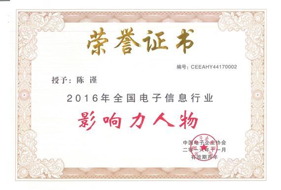金鹏总裁陈谨荣膺“2016年全国电子信息行业影响力人物”