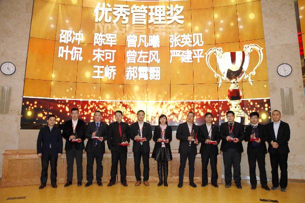 1月13日,三胞集团召开了2016年度集团总部评优表彰大会,对30余名先进个人和团队进行了表彰嘉奖。集团副总裁施长云、高级人力助理总裁陆海波、高级人力助理总裁崔春兰出席大会并为优秀员工及团队颁奖。本次大会还邀请了助理总裁花贵侃(2015年优秀管理奖获得者)、投并财务总监黄锦哲(2015年优秀员工奖获得者)、董事长业务助理许娜(2015年优秀新人奖获得者)等去年的获奖者们为今年的获奖者们颁奖,希望他们能够继续保持工作热情,将优秀的三胞人精神传承下去。