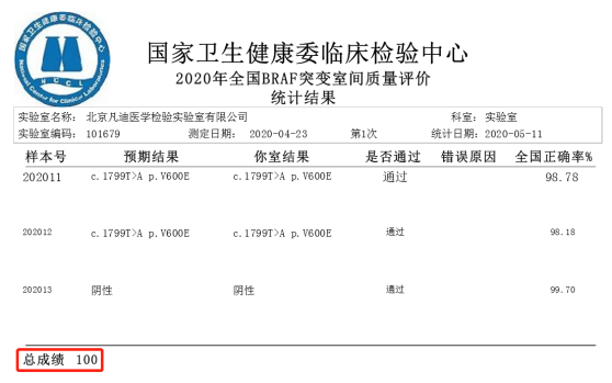 日前,国家卫健委临床检验中心(NCCL)公布了2020年上半年室间质量评价(以下简称“室间质评”)结果。三胞集团旗下凡迪基因参与的EGFR突变、KRAS突变、BRAF突变、PIK3CA突变、EML4-ALK融合基因检测(PCR)和肿瘤游离DNA EGFR肿瘤六项室间质评全部获得满分通过。