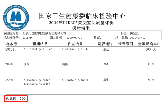 喜讯|三胞旗下凡迪基因全满分通过2020年NCCL六项室间质评项目
