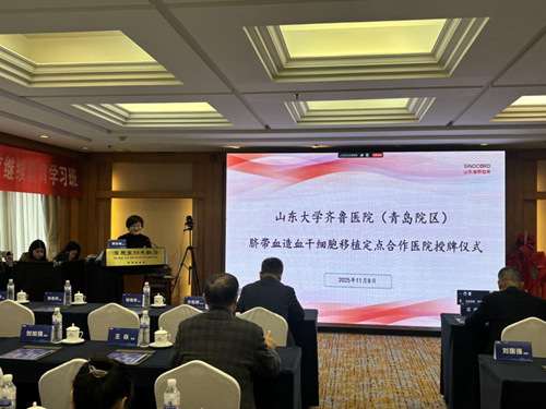 近日,山东省脐血库与山东大学齐鲁医院(青岛院区)举办脐带血造血干细胞移植定点医院揭牌仪式。山东大学齐鲁医院(青岛院区)副院长孟伟,山东省脐血库采集中心主任、山东省齐鲁干细胞工程有限公司副总裁宋现收出席仪式,医院血液科主任郭冬梅主持仪式。此次合作标志着双方在脐带血领域的资源整合与临床应用迈入新阶段,将为区域血液疾病患者带来更多治愈希望。