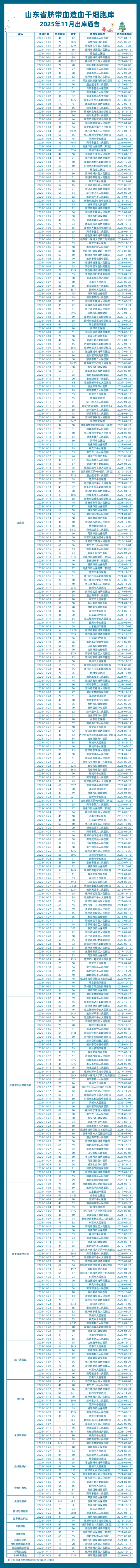 2025年11月共临床应用脐带血393份。截至2025年11月30日,山东省脐血库已临床应用25237份脐带血。其中2025年1月至11月临床出库4121例。