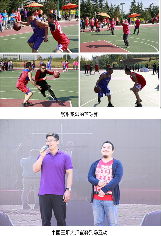 在下午的篮球赛,当“中国乔丹”胡卫东带着他的伙伴出现时,整个篮球场都沸腾了,大家围着胡卫东合影、求签名。比赛期间,胡卫东当起了教练,亲自指导运动员;比赛结束后,还与冠亚季军队分别打了一场友谊赛,胡卫东用精湛的球技回应了观众的呐喊和激情。