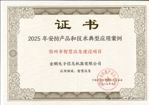 三胞智慧科技|金鹏智慧应急项目获2025年安防产品和技术典型应用案例奖