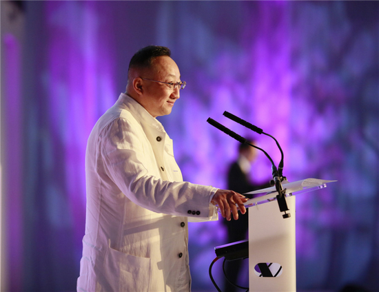 4月23日,英国伦敦,三胞集团董事长袁亚非在HOF供应商大会上发表演讲。