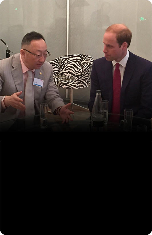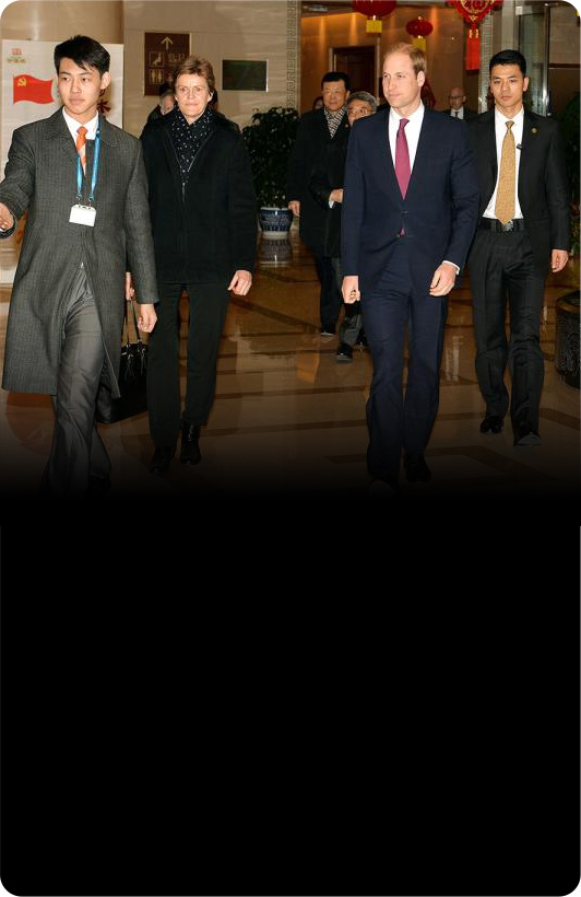 创意英伦盛典现场,威廉王子祝贺House of Fraser 业绩创165年历史新高,邀请袁亚非一同前往云南西双版纳野象谷看望野生大象。