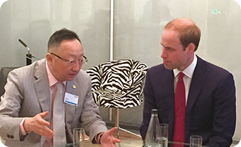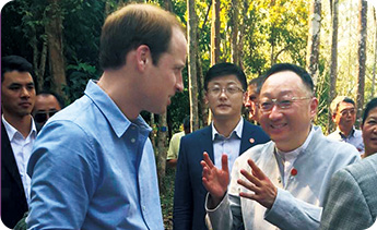 三胞集团董事长袁亚非与威廉王子在野象谷会面,就共同成立野生动物保护基金进行深入交流。