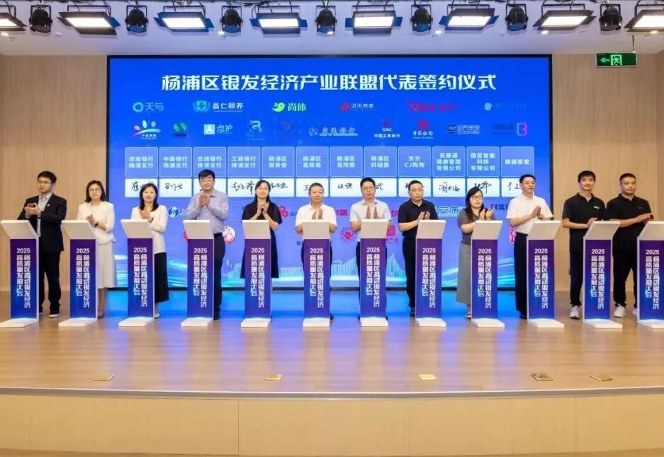 2025-07-092025年上海市杨浦区推动银发经济高质量发展大会上,杨浦区银发经济产业联盟正式成立,安康通作为养老企业代表,与区民政局、区发改委、区商务...